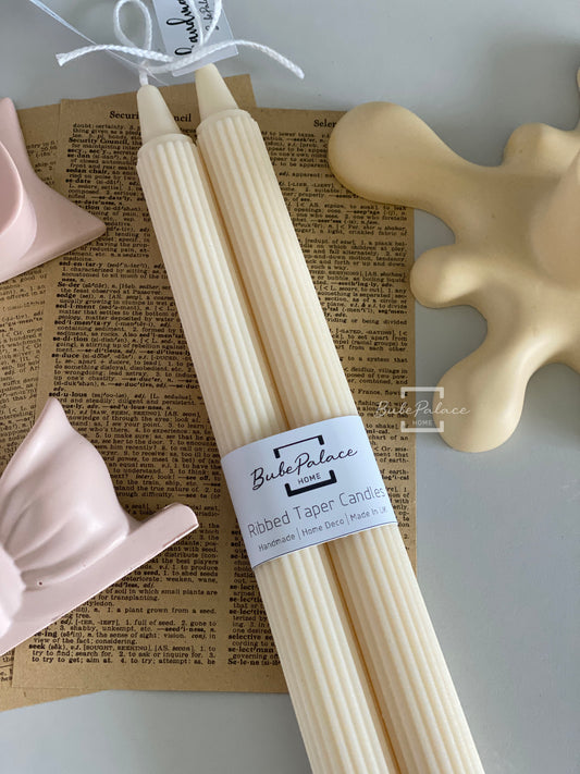 Handpoured Ribbed Taper Candles Set of 2